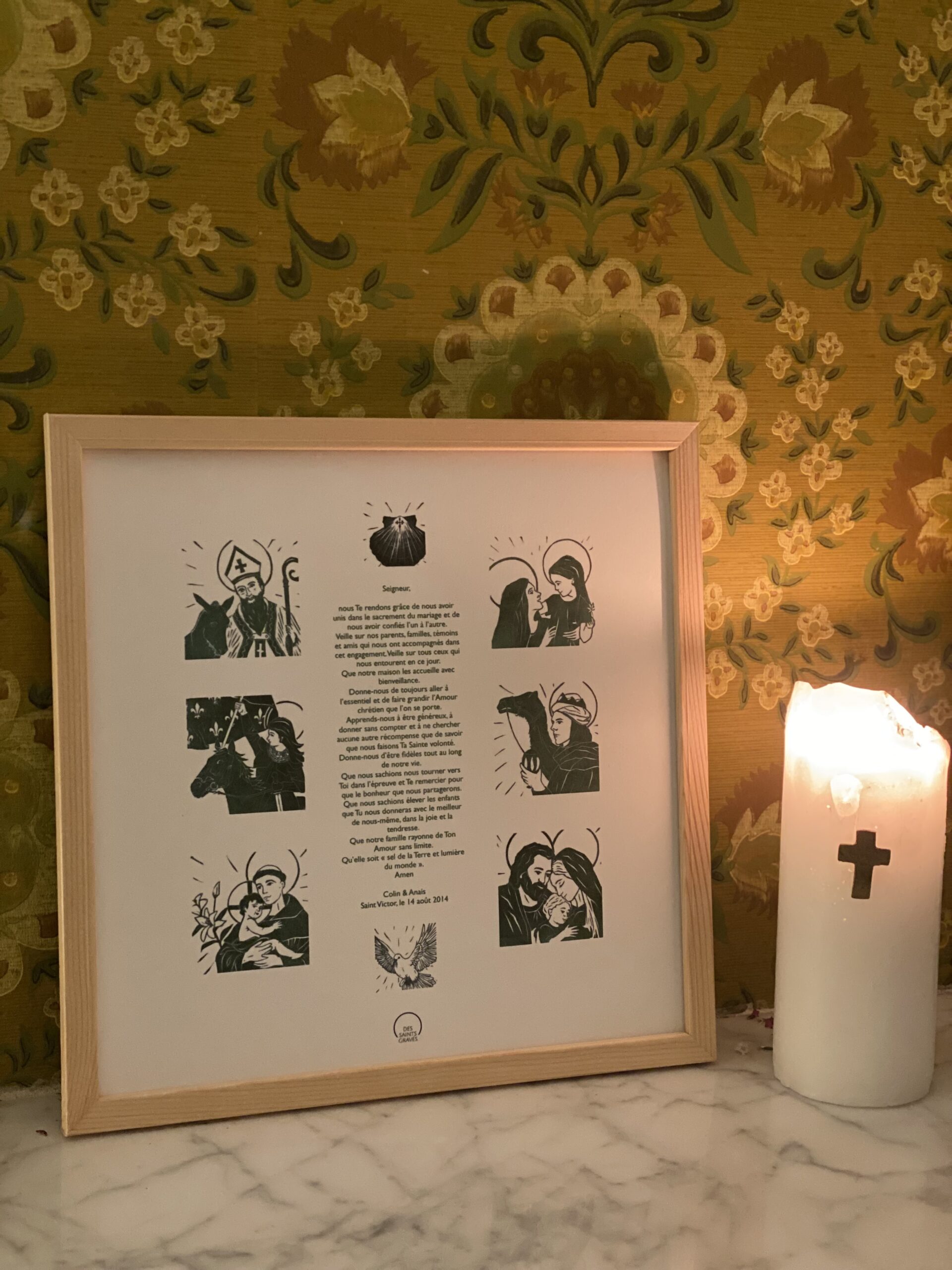 Elle crée des gravures de saints et de symboles inspirés, nourries par sa foi et par des années de recherche artistique.