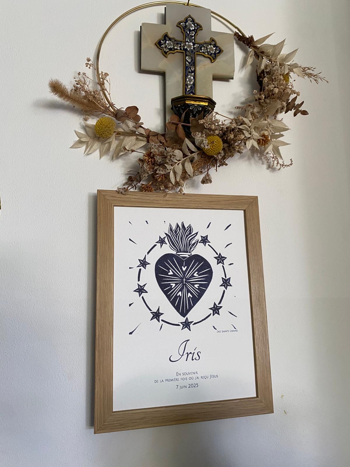 Cette affiche personnalisée est bien plus qu’un simple souvenir : c’est une trace délicate du jour où le cœur s’est ouvert à la grâce.