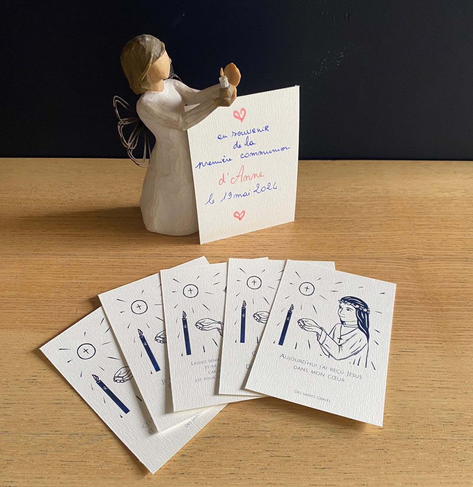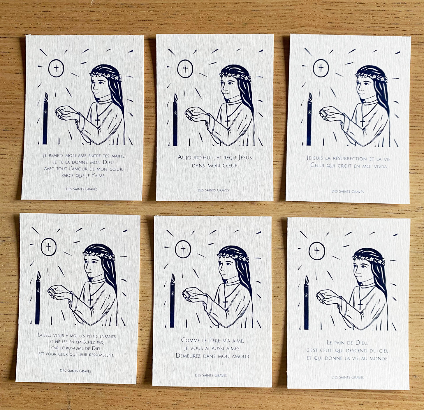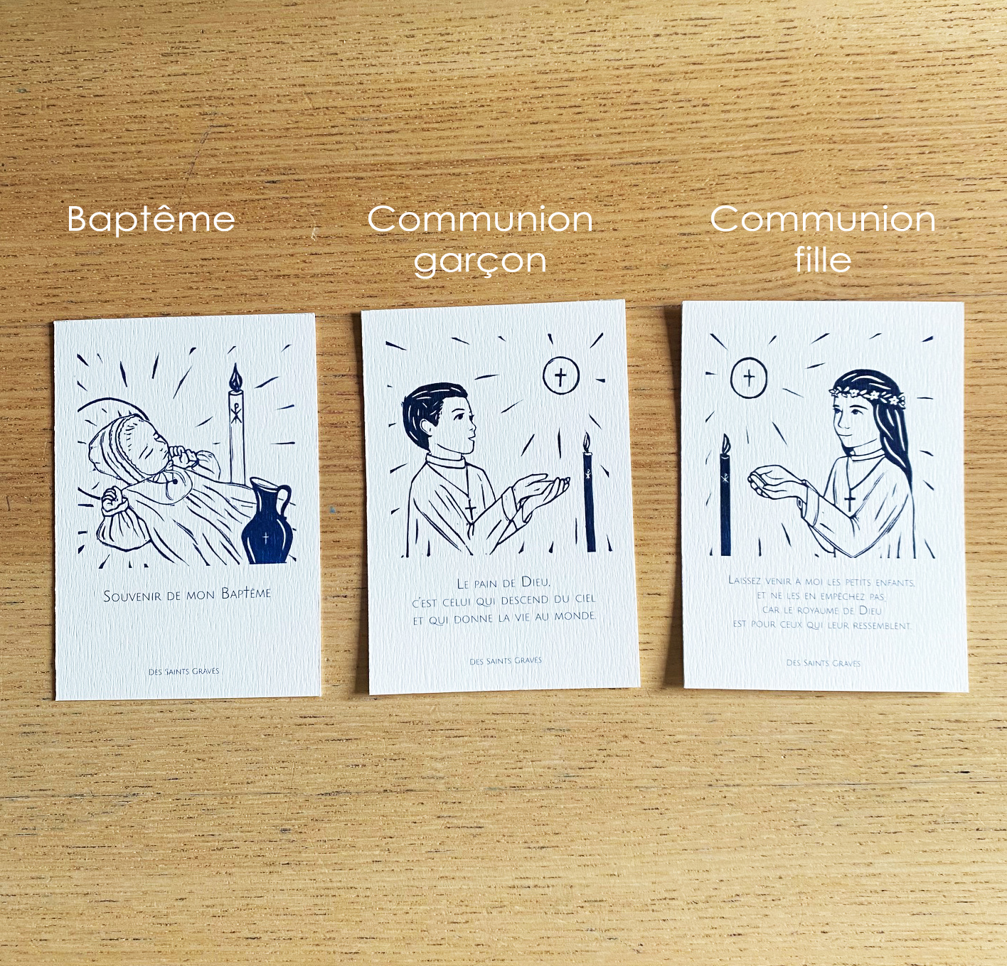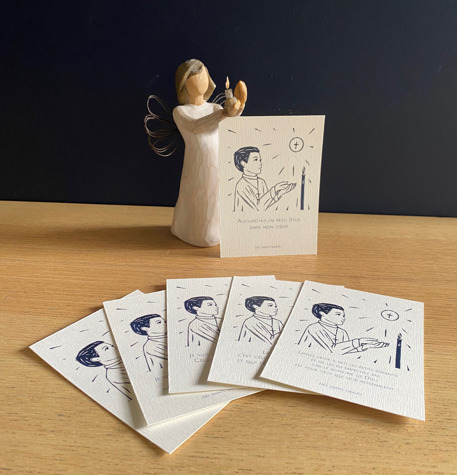 NB: Sous l’image des signets de communion, il y a une petite phrase ou un verset en rapport avec le sacrement.