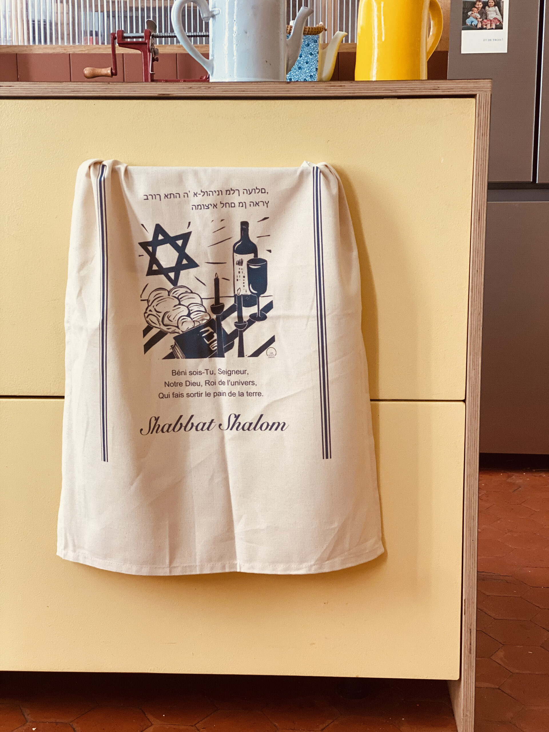 Ce torchon, orné d’une illustration inspirée du Shabbat